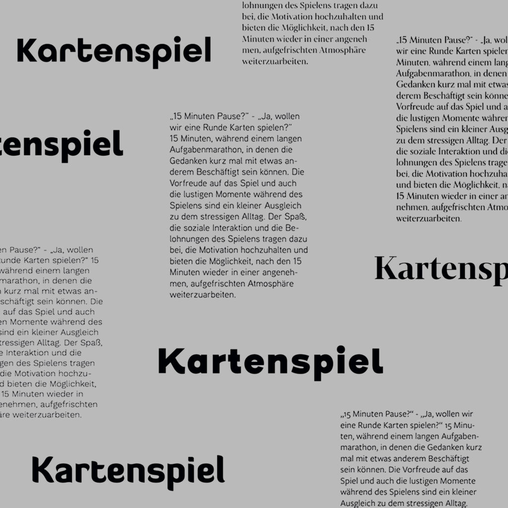 In the design phase, several different typefaces were tested to find a suitable balance between readability, expression, and hierarchy. After comparing multiple options in layout tests, the final choice settled on Orpheus Pro (Medium, 14 pt) for the body text, and Henderson Sans (Basic Black, 60 pt) for headings, creating a strong visual anchor. This combination provided both clarity and character, reinforcing the book’s rhythm and structure.