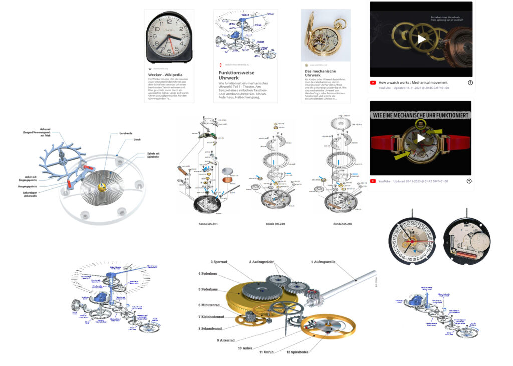 Research provided the basis for the project. The focus was on understanding the function and interaction of the core elements of a clock. This knowledge informed both the explanatory texts and the visual representation, making it possible to explain the mechanism step by step without oversimplifying its complexity.