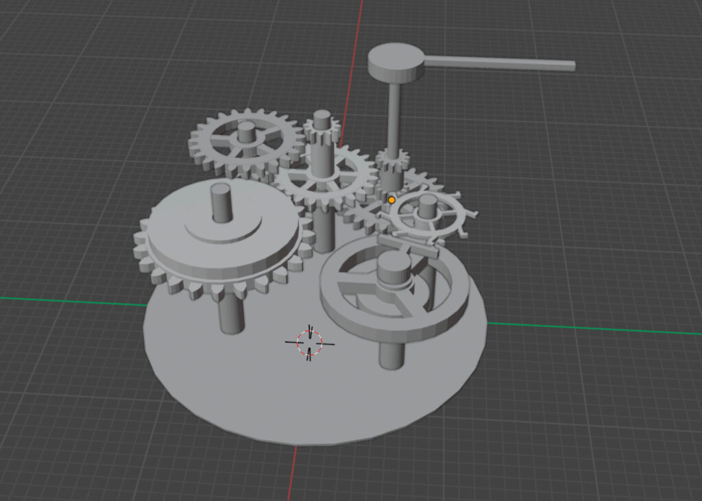 The individual parts of the mechanism were modeled in Blender as a preparation for 3D printing. The digital file not only acted as a technical template for production but also as a tool for visualizing proportions and connections between the components. This step was crucial for aligning the physical models with the explanations and design of the poster.