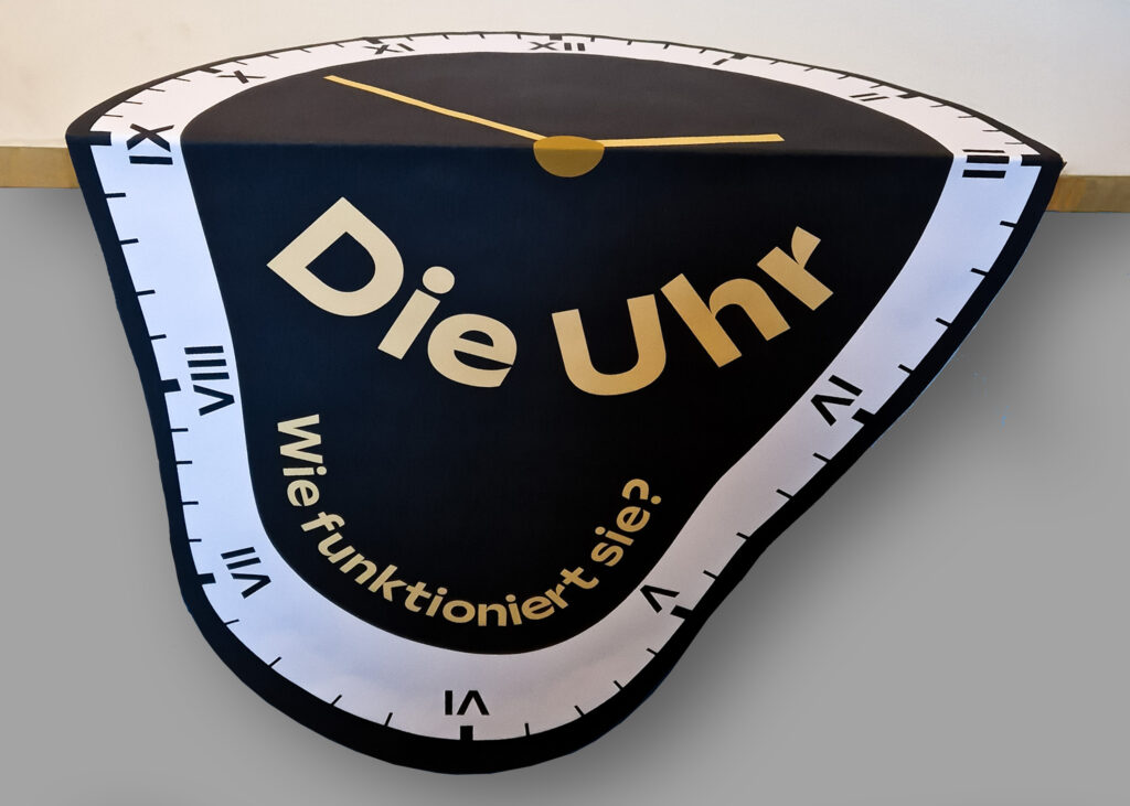 The project “Die Uhr: wie funktioniert sie?” explains the wheel mechanism of a clock, focusing on its essential components such as the mainspring, gears, escapement wheel, balance wheel, anchor, and hands. To visualize this, a poster was designed in combination with simplified 3D models, allowing viewers to understand each element on different levels of detail. The first layer offers short explanations of individual elements, while the second layer provides more in-depth information supported by research. The design builds on a clear typographic and visual system, which helps users to understand the workings of a clock.